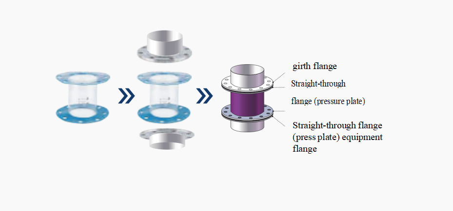 Fit the flange pressure plate on the flexible hose, then tighten the bolts at both ends in sequence to complete the installation.